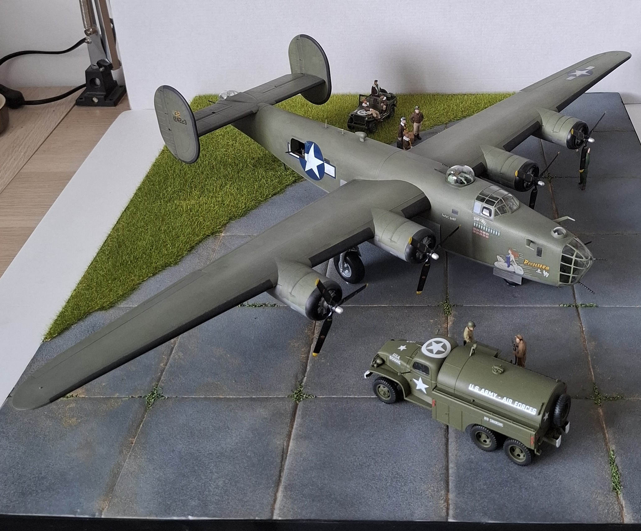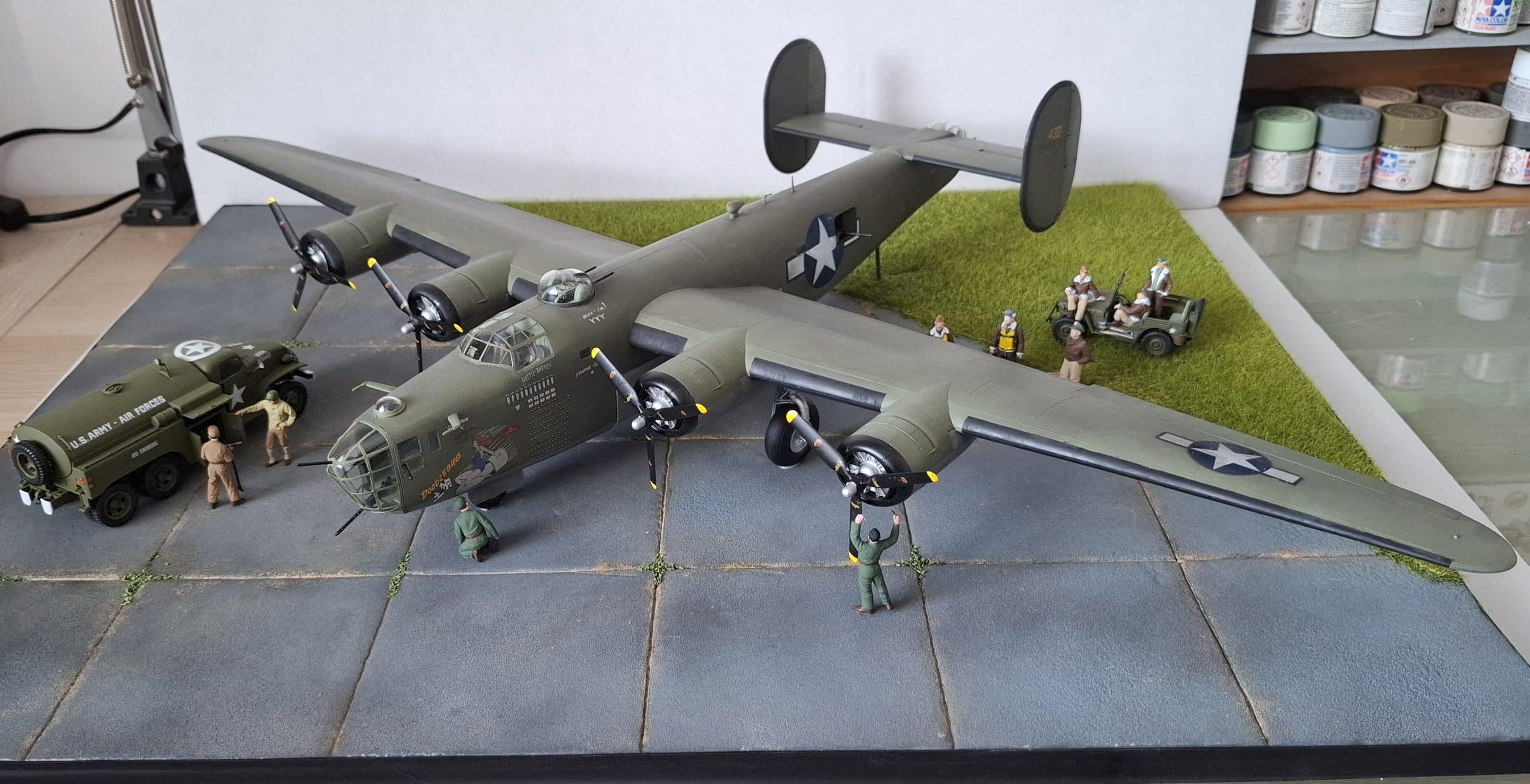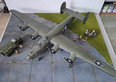 Le Consolidated B-24 Liberator est un bombardier lourd américain, conçu par Consolidated Aircraft de San Diego (Californie). Il est connu dans la société comme le Model 32, et un petit nombre des premiers modèles sont vendus sous le nom LB-30, pour « Land Bomber ». Le B-24 est utilisé dans la Seconde Guerre mondiale par les forces aériennes et navales alliées, et par plusieurs branches des forces armées américaines pendant la guerre, établissant un bilan de guerre particulier avec ses opérations en Europe de l’Ouest, dans le Pacifique, en Méditerranée, et sur le théâtre des opérations de Chine-Birmanie-Inde.
